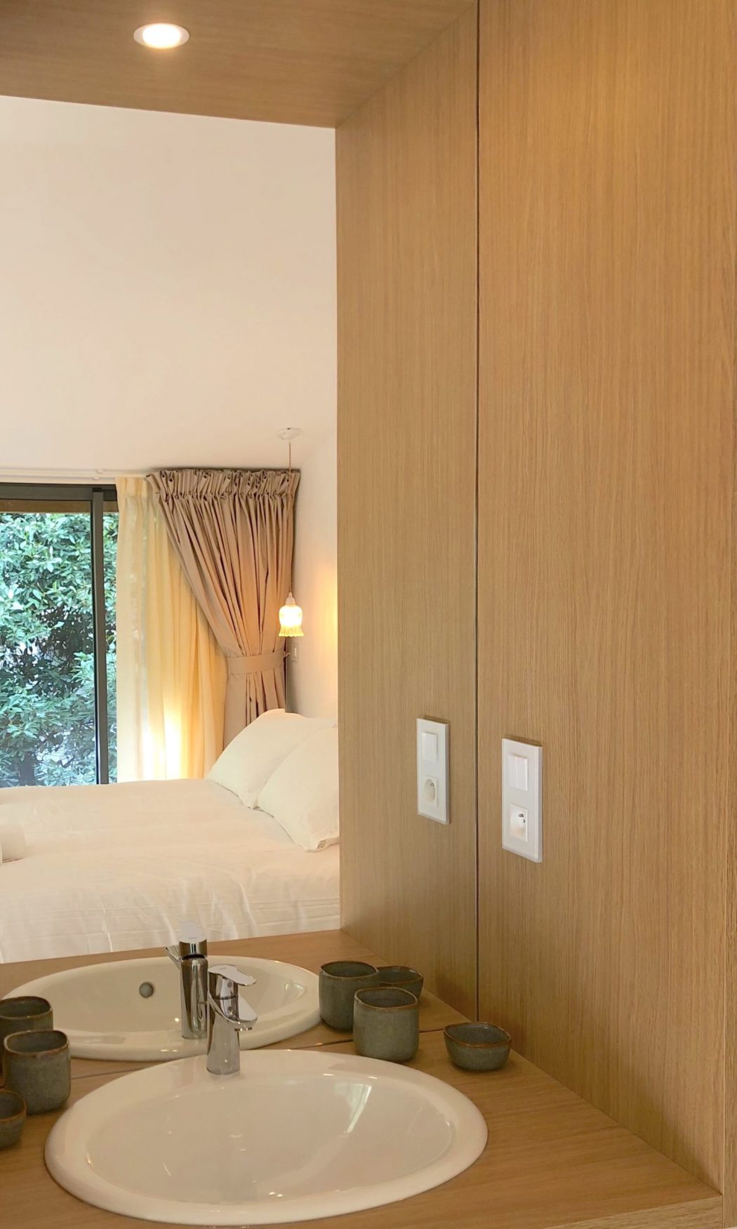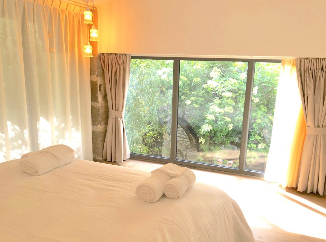 Détendez-vous sur le fauteuil en velours accompagné de votre meilleur livre et réveillez-vous avec la vue à 180 degrés sur le jardin, les sureaux et les arbres de Judée.
